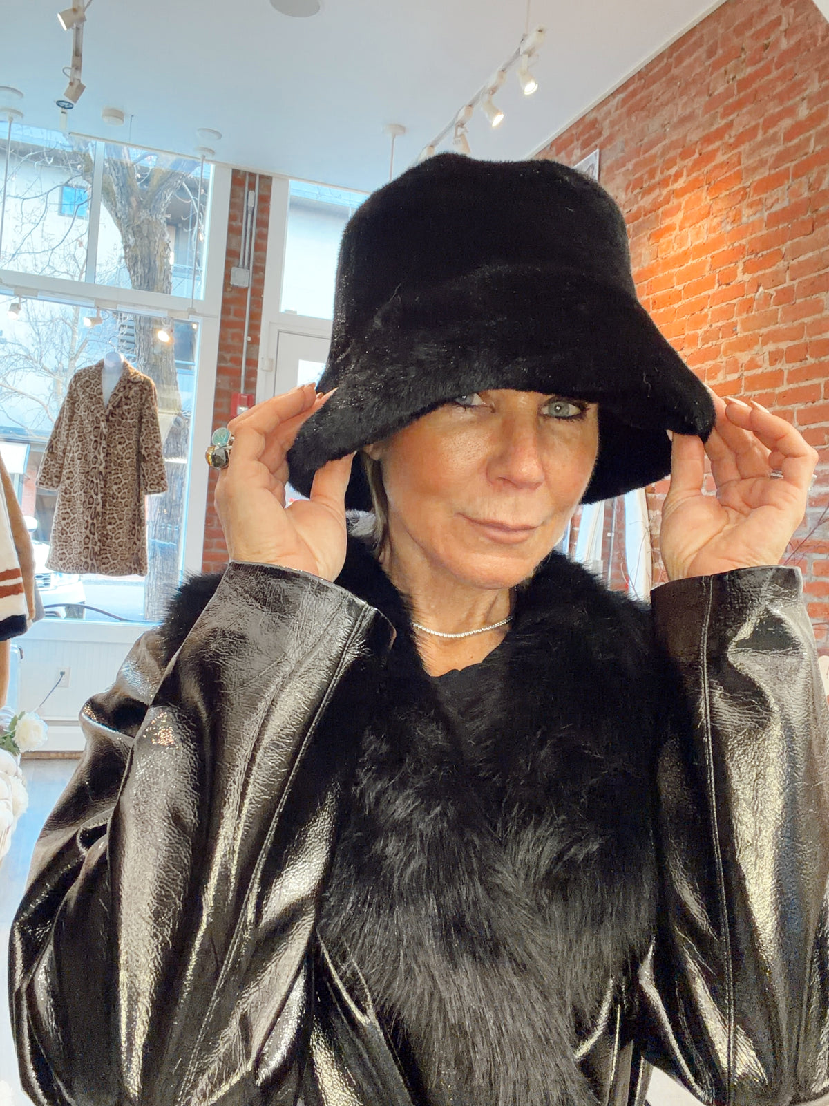 Faux Fur Bucket Hat - Black