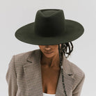 Dakota, a wide-brim felt hat, exudes quiet confidence with its smooth triangle crown. The flat wide brim protects skin + eyes from too much rain or shine.