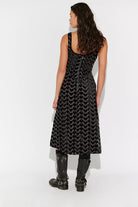 Embody playful charm with this sleeveless midi dress, featuring a flattering, structured bodice, a classic A-line silhouette, and layered embroidered mesh fabrication for a bold touch.