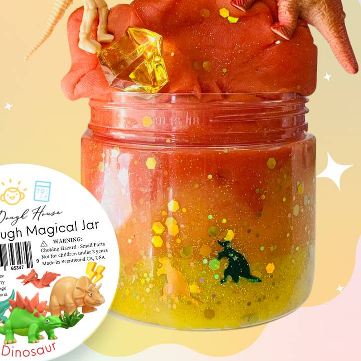 Magical Sensory Dough Paired with themed toys & trinkets. The Magical Dough is batch-made by the Dough House shop, and jarred by hand.