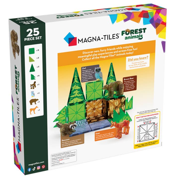 The wonderful wilderness awaits! Join us, as we bring imaginative play to life with the new Forest Animals 25-Piece set from the MAGNA-TILES® Animal Collection. Kids can create their own stories and adventures as they build their unique forest scene, complete with towering trees and bubbling streams. No matter where your adventure takes you, it’s sure to be a “Hoot” for your little explorer.