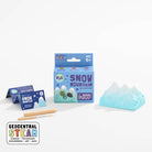The Snow Mountain Dig Kit features a custom blue mountain dig block made of premium quality, lightweight plaster. - Each block contains three treasures – one acrylic gem, one polished crystal, one rough crystal – and comes with a chisel and brush. - Treasures can be identified with the included guidebook.