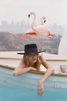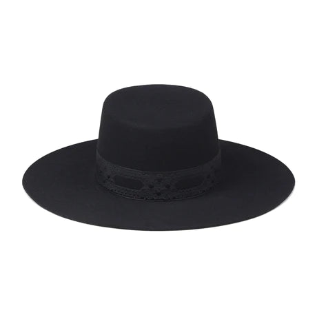 The wide-brimmed boater inspired hat is a must have to help you elevate your wardrobe. The black patterned vintage ribbon will add that classic style to your new favorite accessory.