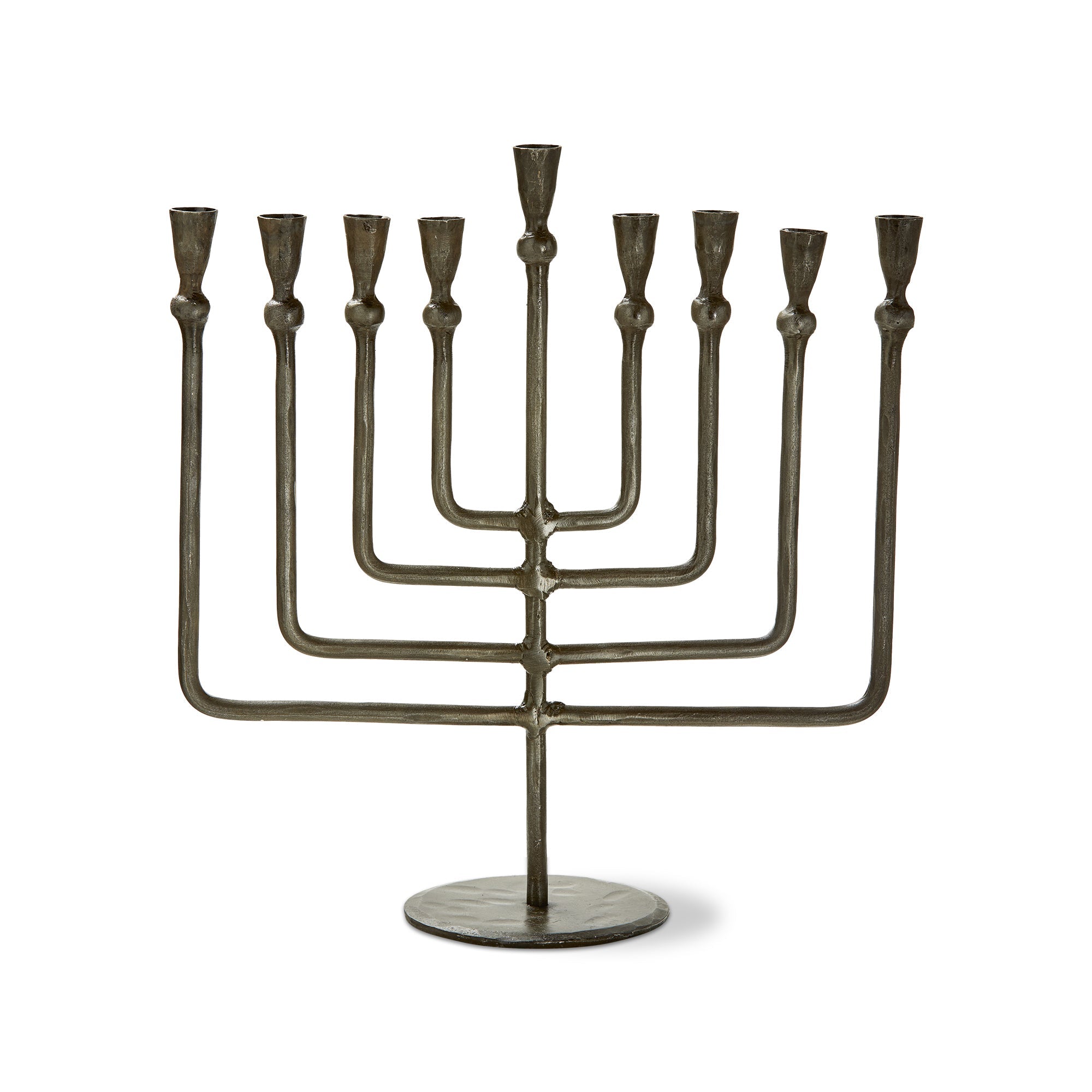 This taper holder is a unique and stylish way to celebrate Hanukkah. the black iron menorah is modern and sophisticated, and it will make a beautiful statement on your mantel or table.