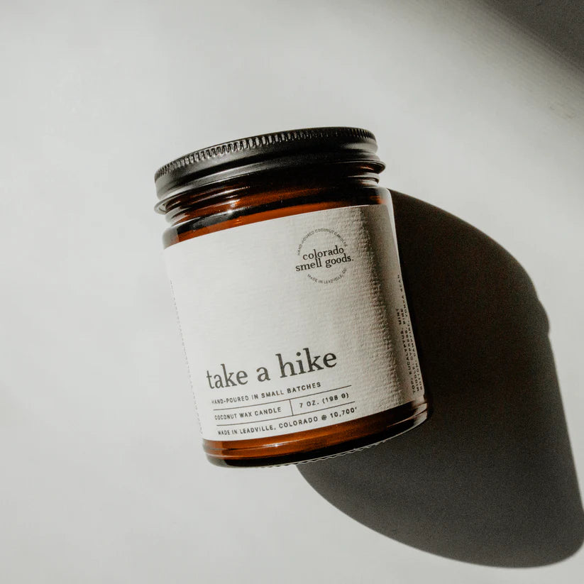 Take A Hike is a refreshing and grounding blend of eucalyptus, mint, cypress, pine, campfire, and tonka bean. Its unique fragrance captures the essence of a peaceful outdoor adventure and creates a cozy ambiance that is perfect for relaxing and unwinding.