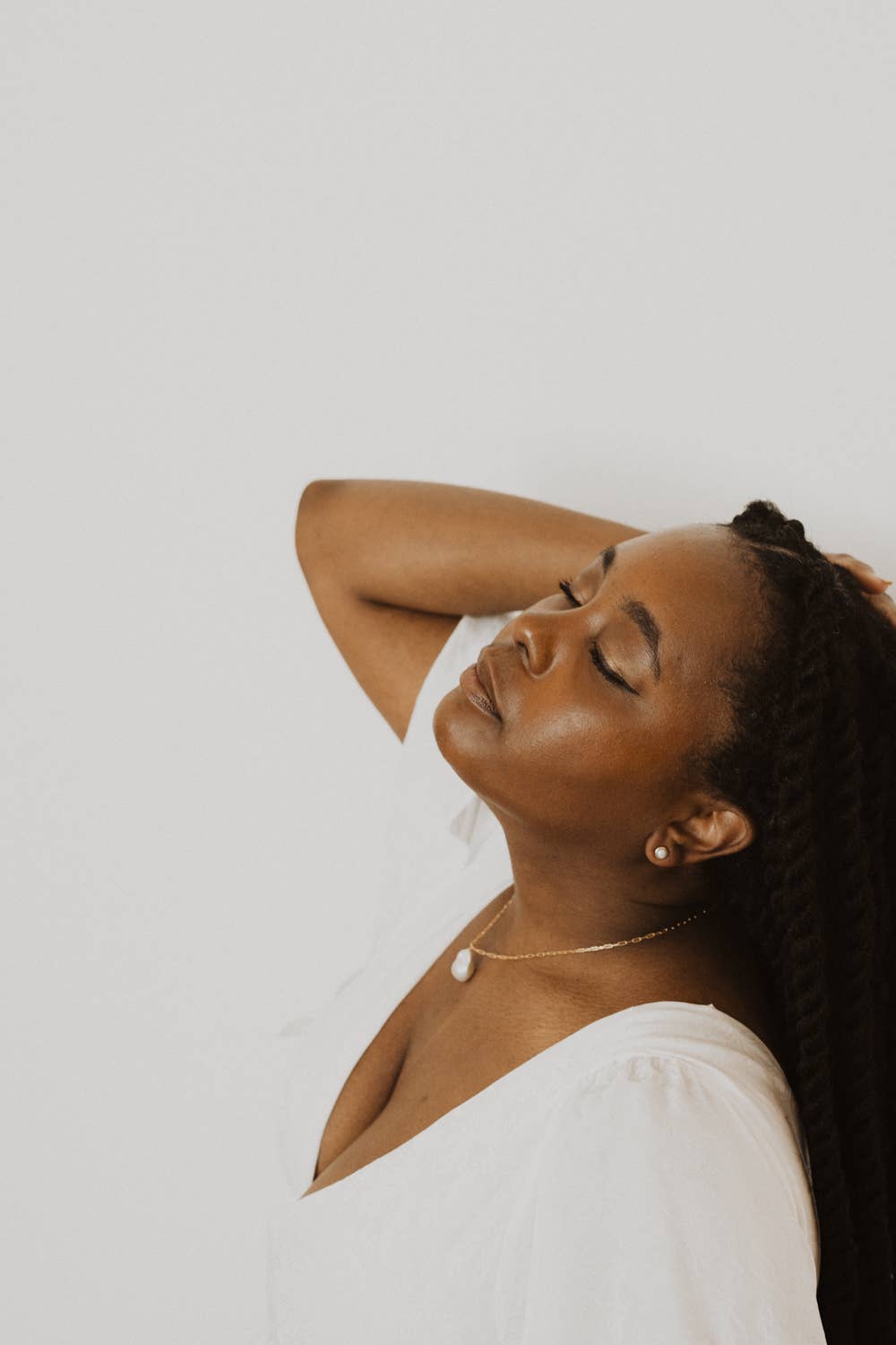 Freshwater 6mm pearls set in brass or gold plated bezels with sterling silver stud posts.