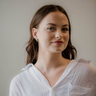 6mm turquoise stones on antiqued, brushed brass with sterling silver studs.