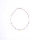 Tiny gold horseshoe mixed with matte seed beads. Measures approximately 16.5" long.
