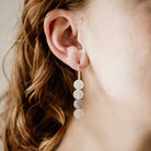These statement pieces are adorned with white glass beads, meticulously hand-shaped on a brass ear wire, ensuring a unique charm.