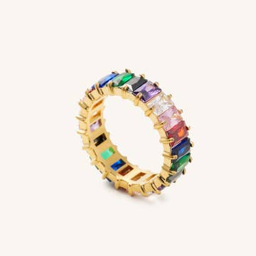 This adorable rainbow gem ring is perfect to add a pop of color to any outfit. This ring is adjustable to fit almost every finger. This ring is silver plated.