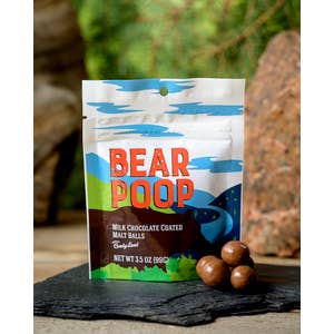 Bear Poop is delicious milk chocolate malt balls in a 3.5 oz. stand up pouch.