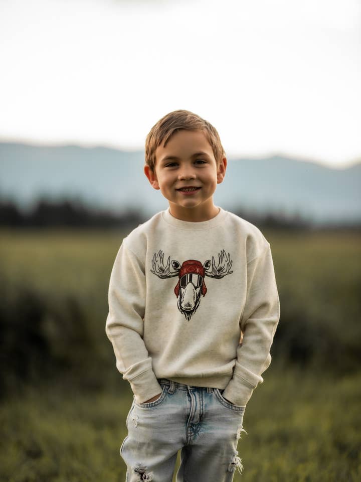 Keep your little one cozy on the slopes with our "Eh Moose" toddler fleece in heather natural. Featuring a quirky ski bum moose design, this fleece provides warmth and comfort for your little adventurer. Perfect for chilly days and wild adventures! 60% cotton/40% polyester fleece