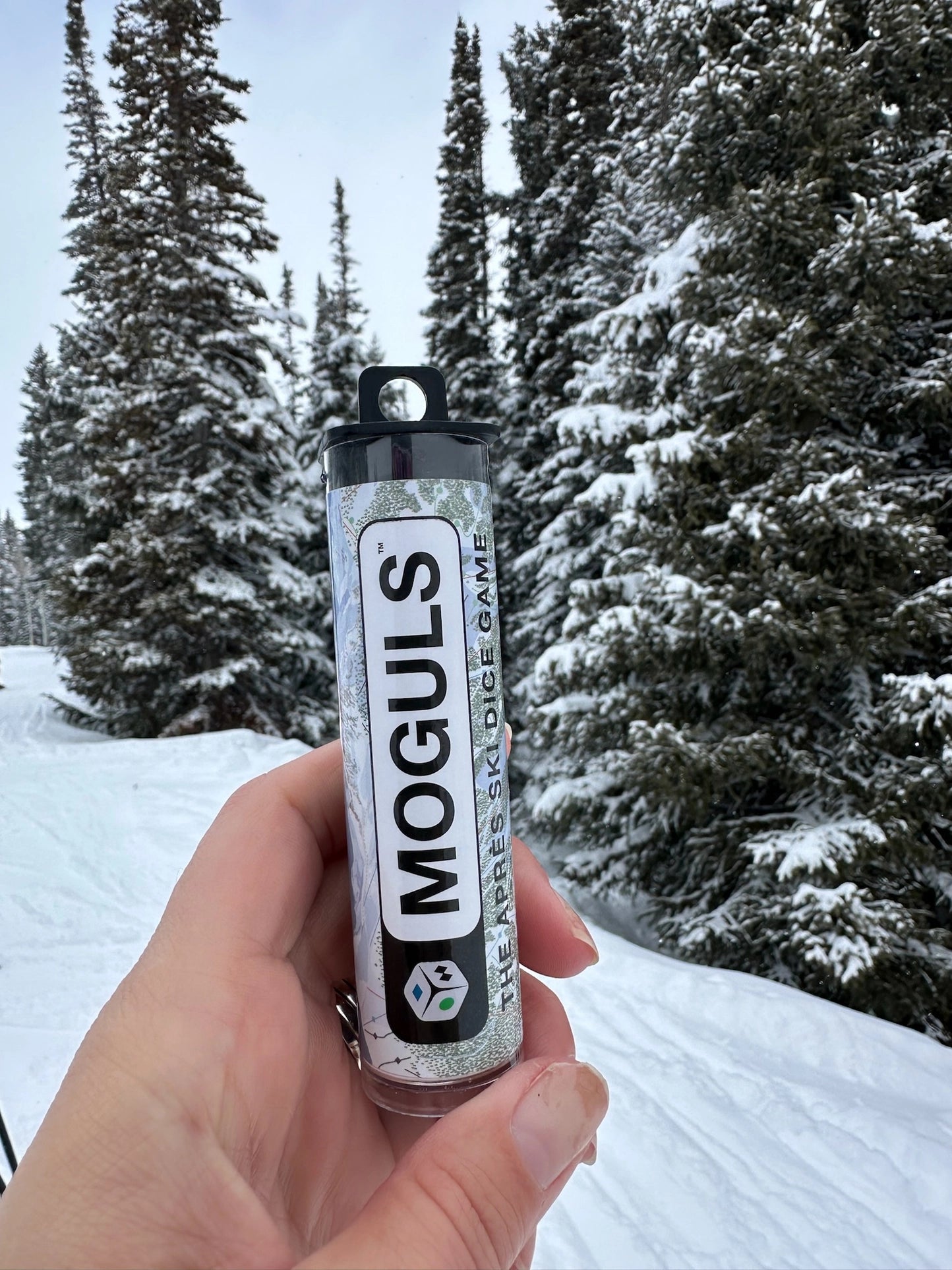 Introducing Moguls Dice: The Aprés Ski Dice Game Experience the thrill of the slopes and the challenge of the dice with Moguls Dice, the ultimate aprés ski entertainment. Whether you're a seasoned skier or a beginner, this game will have you rolling for victory and avoiding those treacherous Magic Carpets! In Moguls Dice, each ski trail color represents a different level of difficulty, with ascending point values that mirror the excitement of the mountain: ● Green Circle = 1 point ■ Blue Square = 3 points ♦ Black Diamond = 5 points ♦♦ Double Black Diamond = 10 points Hit the Slopes with Strategy Compete against your fellow skiers to roll the highest combination of points by skillfully selecting and keeping the right dice. But beware, the skier with the lowest score in each round has to contribute a chip to the middle of the pot.