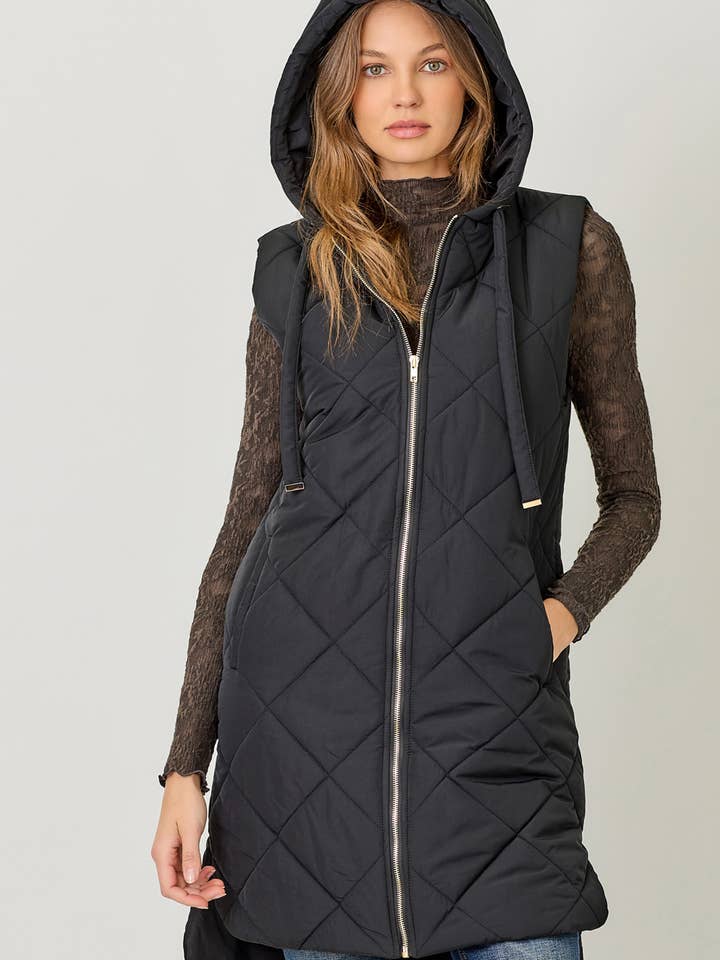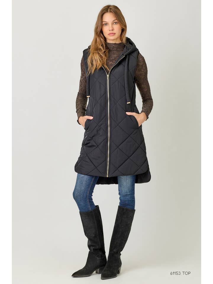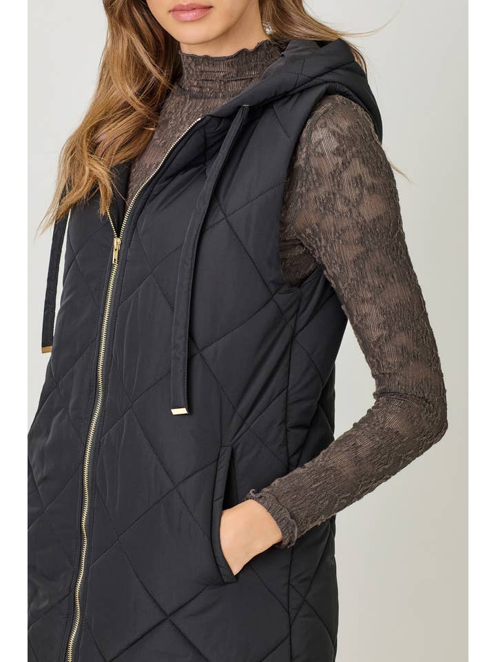 Quilted Puffer Vest - Black