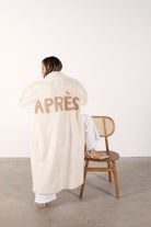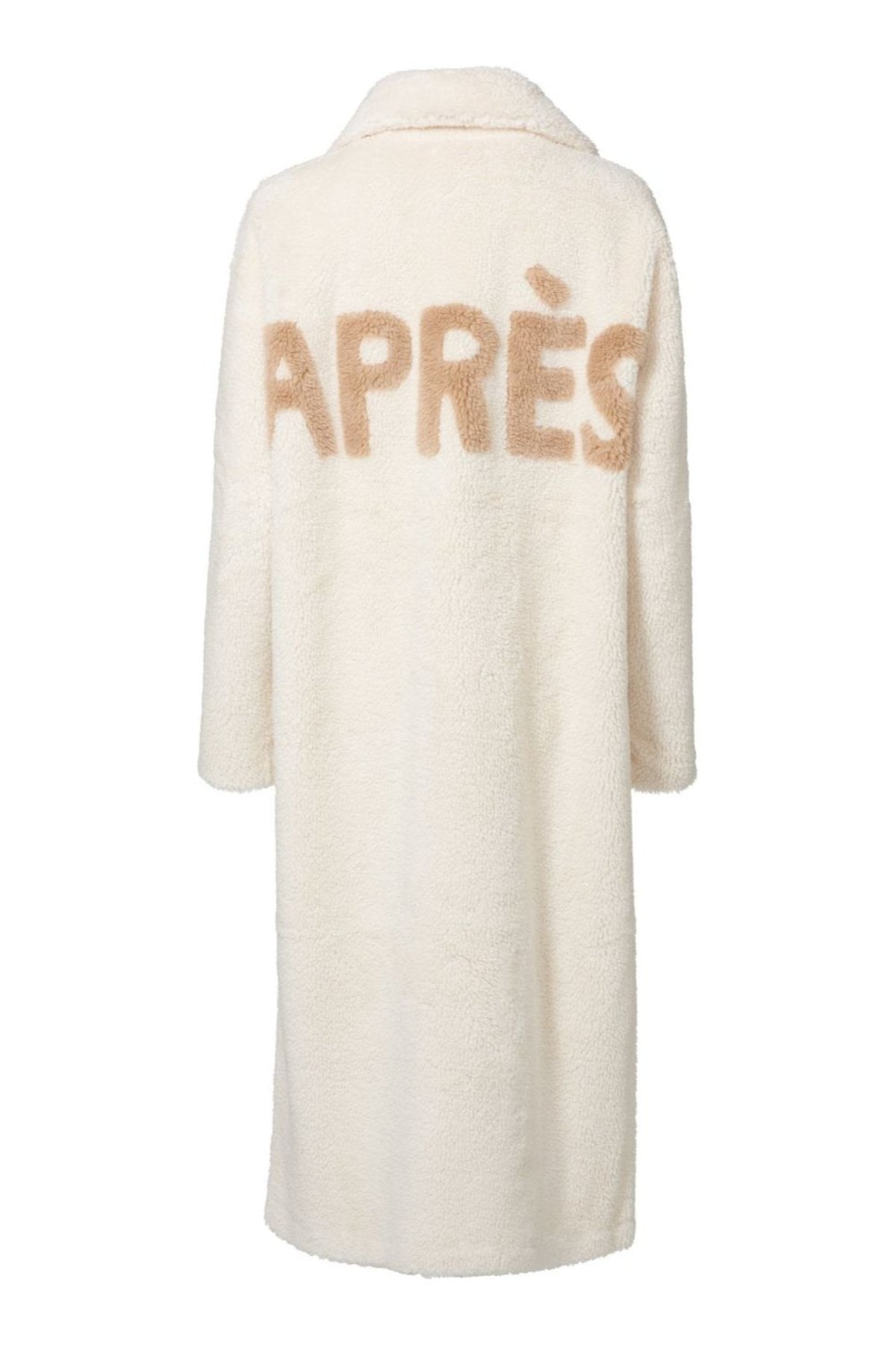 Introducing the Ajax Coat in elegant Vanilla. A must-have for every cool girl. Crafted from luxurious faux shearling with an oversized collar. Features The Après logo on the back that adds a chic and playful touch, while generous cozy pockets make this a practical choice.