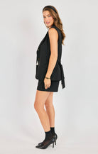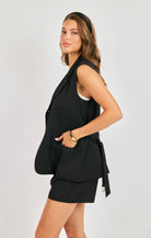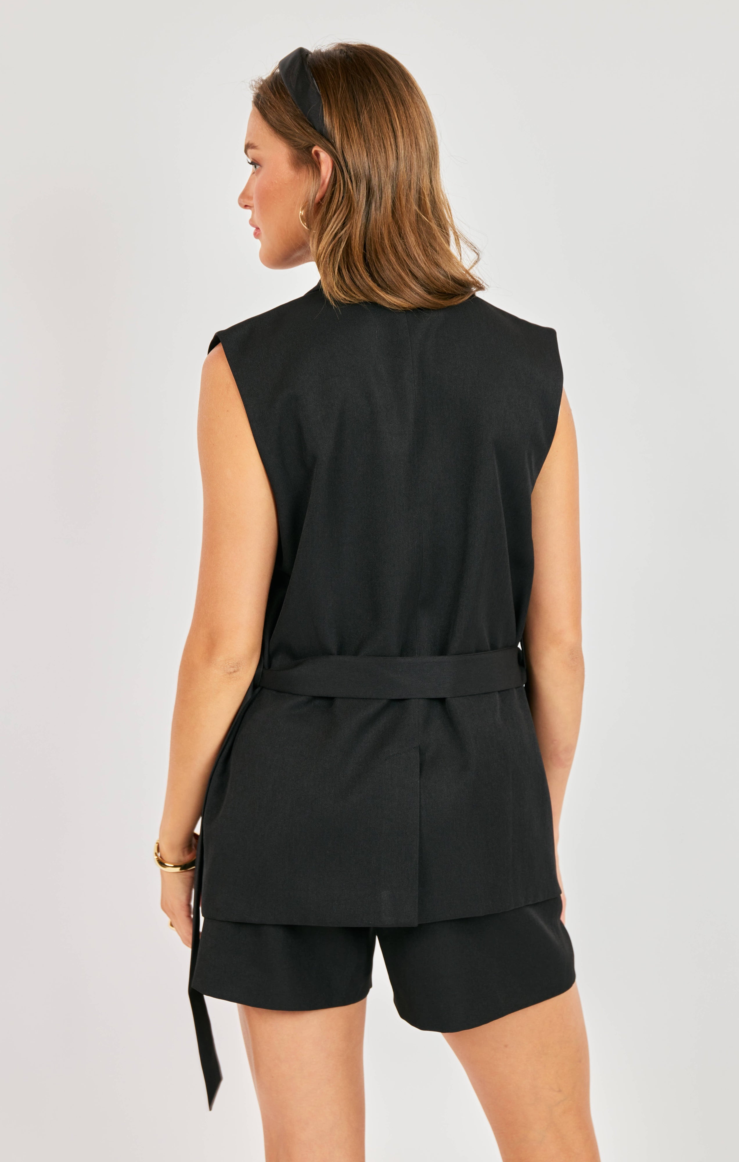 Black belted mid thigh vest