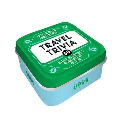 Inside this 2.5" square by 1.25" tall tiny tin, you can travel around the world without leaving your dinner table, or take this game on the go—either way, the enlightening and entertaining trivia questions in this deck are sure to inspire ideas for the next family vacation! Includes 51 cards. For 2+ players