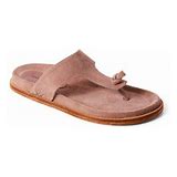 A pronounced toe post offers a secure fit on a supple suede flip flop grounded by a cushioned footbed for comfortable weekend-ready wear. Leather upper and lining/rubber sole