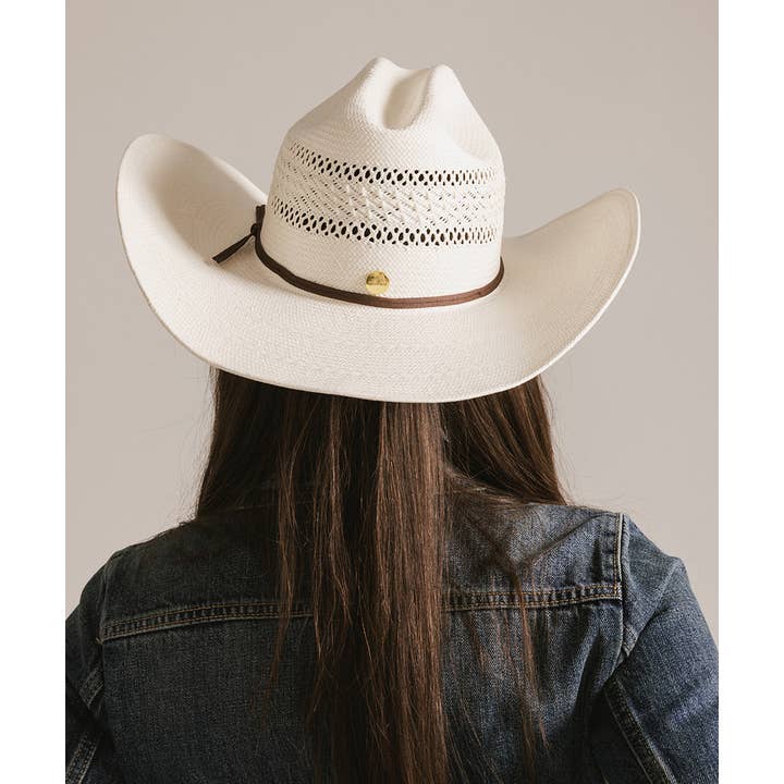 The Oakley is a classic waxed paper straw cowboy hat, designed for both durability and charm. Featuring a traditional cattleman crown, this hat offers a structured yet lightweight feel, perfect for long days under the sun.
