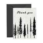 The "Thank You" Card featuring serene evergreen trees. This nature-inspired design captures the essence of appreciation, making it a perfect way to express thanks. Whether for a thoughtful gesture, a helping hand, or a special favor, this card adds a touch of sincerity. Crafted with care, it serves as a meaningful token of gratitude.