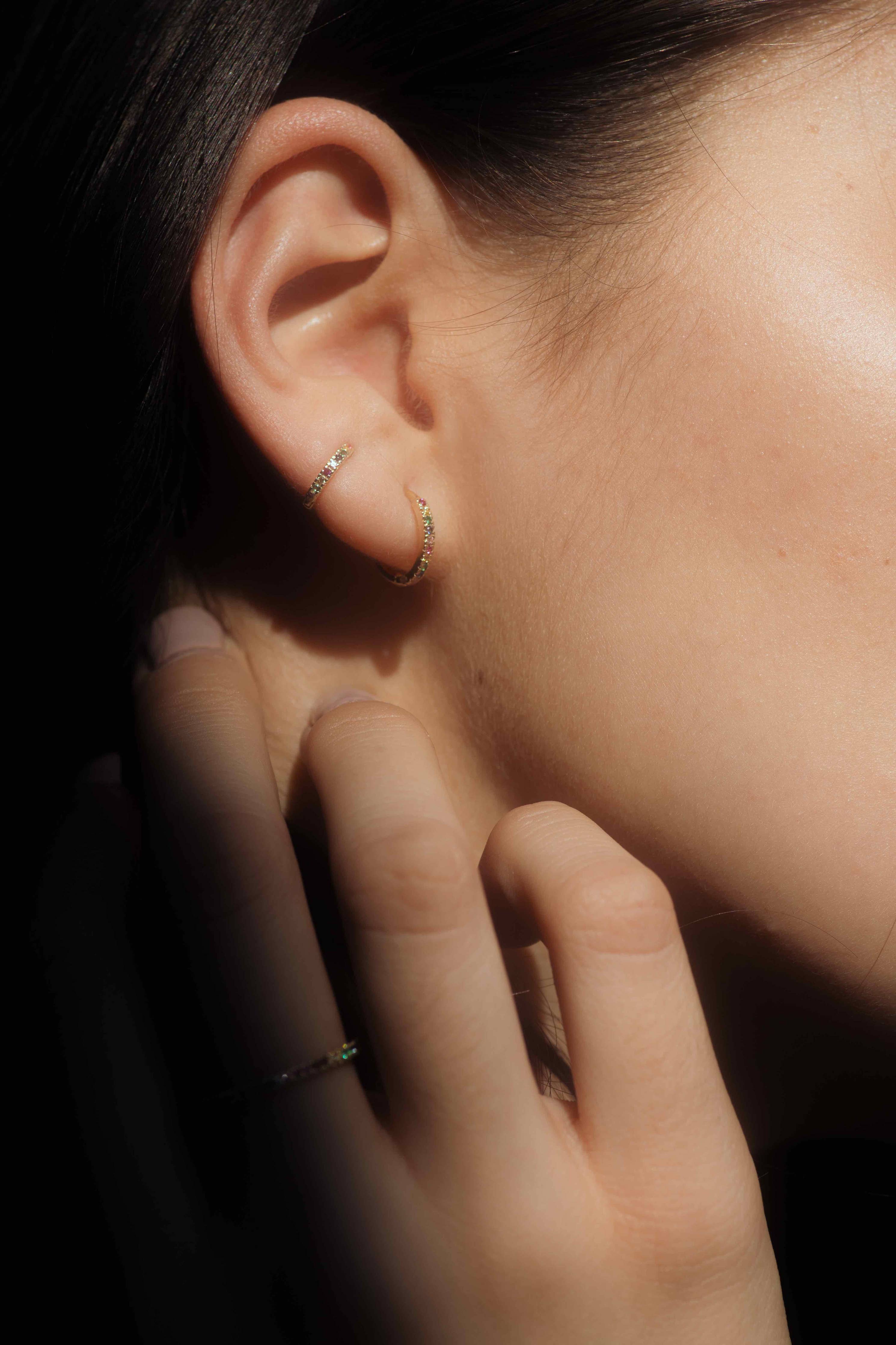 Medium Size: Inner 10mm, Outer 12mm - Sold as a pair - 10k Yellow Gold - Stones: Cubic Zirconia - Hypoallergenic - Can be worn in water
