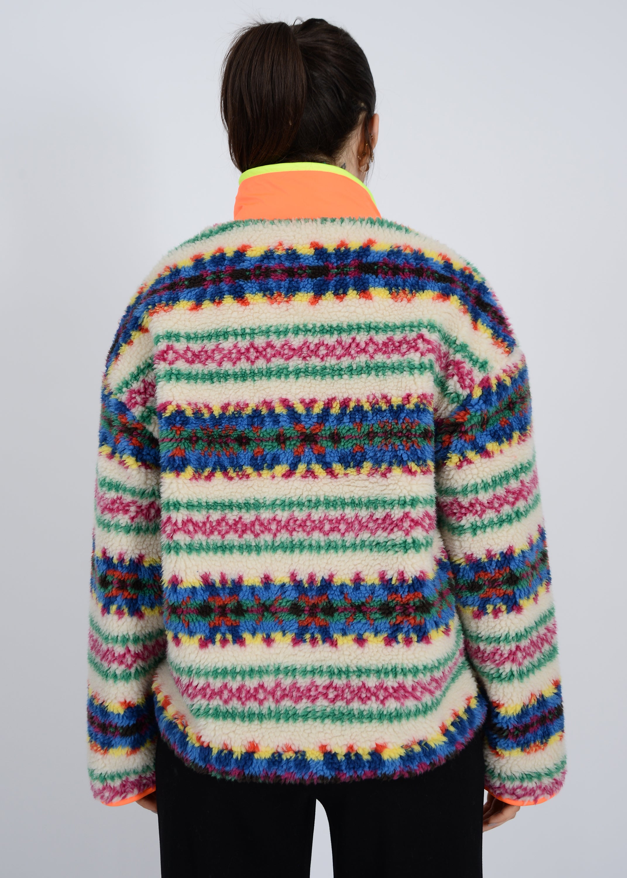 1/2 Zip Sherpa pullover with nylon neon accents.