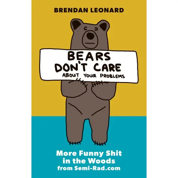 Bears Don't Care About Your Problems: More Funny Shit in the Woods from Semi-Rad.com. If you’ve ever considered the absurdity of sleeping on the ground in a place where bears live, pooping in a bag on a glacier, or trying to teach someone you love a sport that scares them to the point of loudly threatening to kill you in front of strangers, Bears Don’t Care About Your Problems will make you laugh. Author and creator of Semi-Rad, Brendan Leonard is part Dave Barry, part Gary Larson, and 100 percent twisted in his own fresh way. The Semi-Rad perspective has become the funny, introspective voice of outdoor Everyman and Everywoman adventurers.