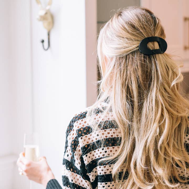 Unwind and relax with the new TELETIES Flat Round Hair Clip! Designed with our same innovative material that is nearly unbreakable, this clip is perfect for lying down, doing yoga or simply laying back without discomfort.