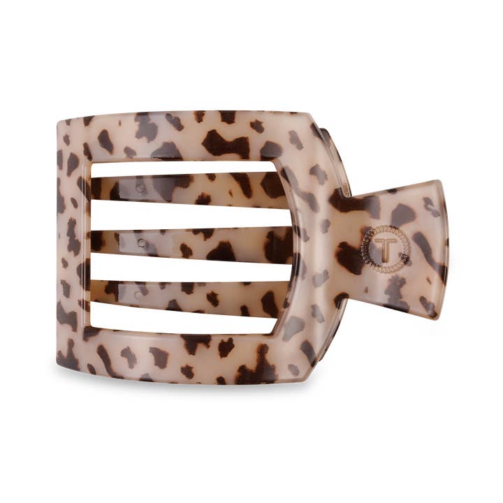 Lay flat and relax with the new TELETIES Blonde Tortoise Medium Flat Square Hair Clip This hair clip is designed to allow you to lay back flat, do yoga, or sit comfortably in a seat with a headrest, and it is made with the same material that is nearly unbreakable. Lay down flat with comfort Bendable teeth for a secure yet gentle hold Lightweight, durable, and hair-friendly Perfect for all-day wear—from sunup to sundown