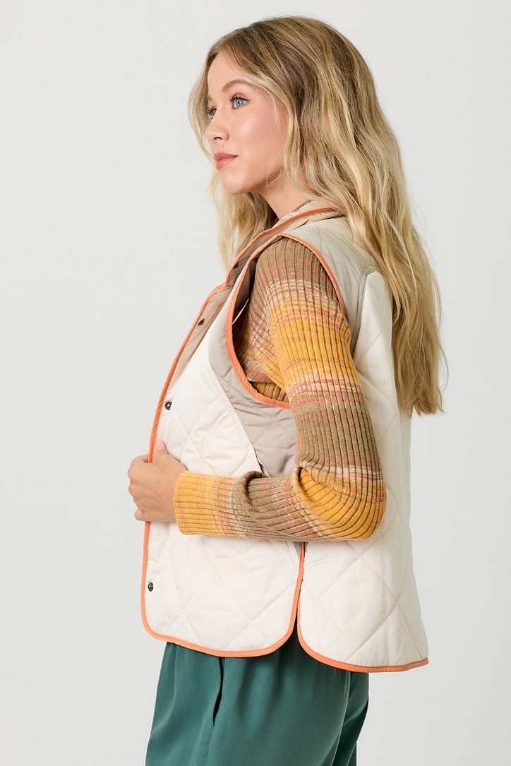 Color Block Padded Vest Snap button down Hi-lo hem Side pockets