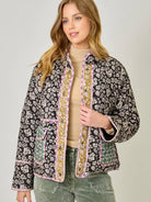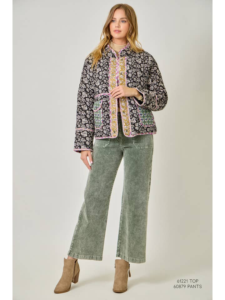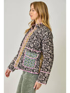 Mixed Media Quilted Jacket Snap button down. Buttoned bottom pockets Color blocked