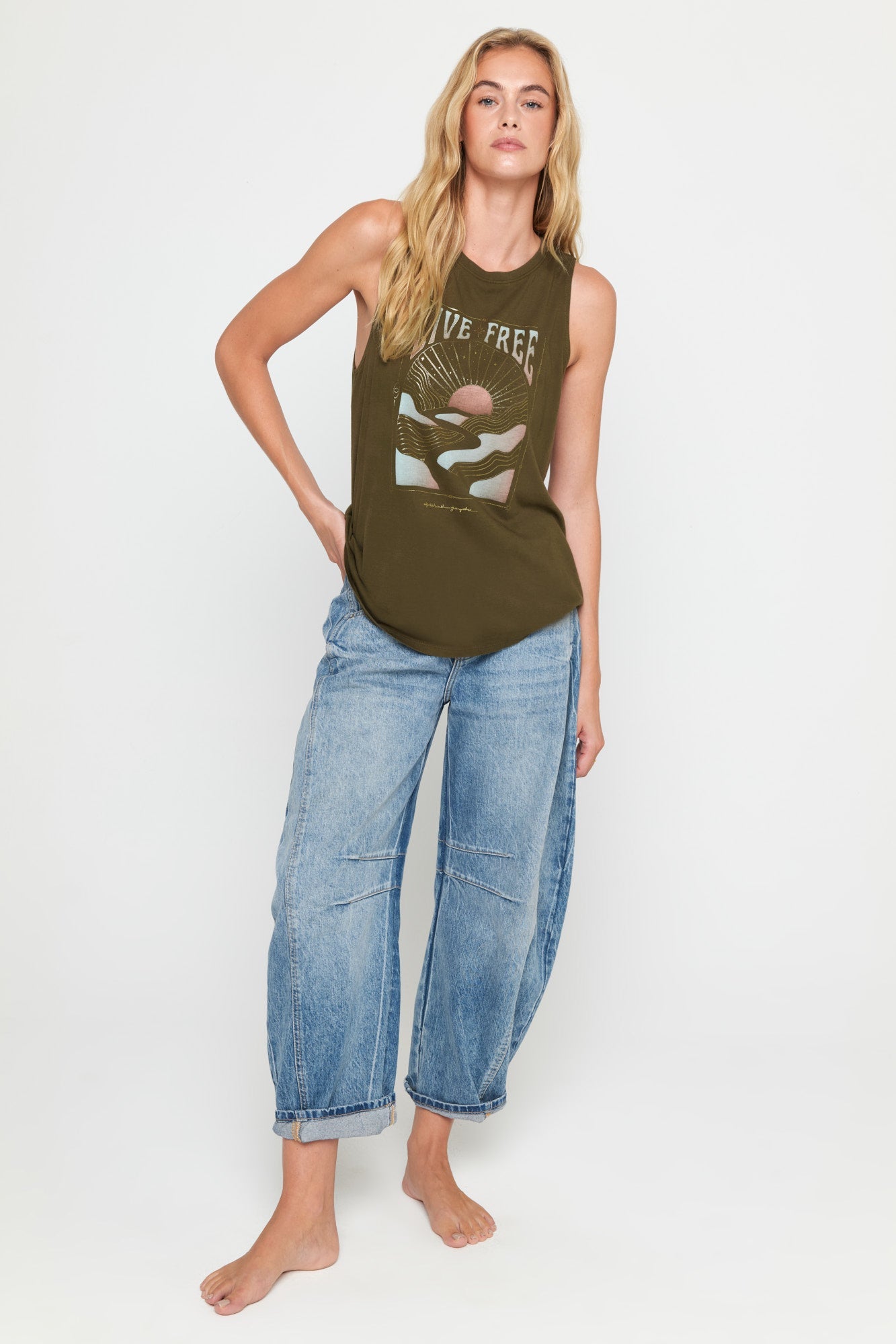 Live free in our best-selling Jade Muscle Tank. Designed with breathability in mind, it’s the perfect relaxed look for the yoga studio, brunch patio, and beyond.