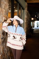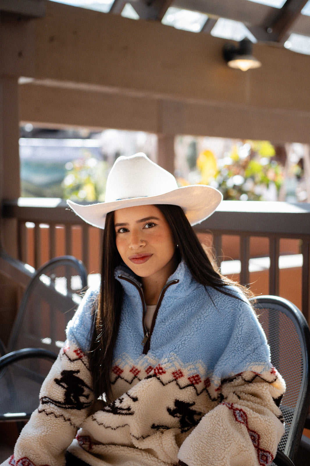 1/2 Zip Sherpa pullover with Faux Suede accents.
