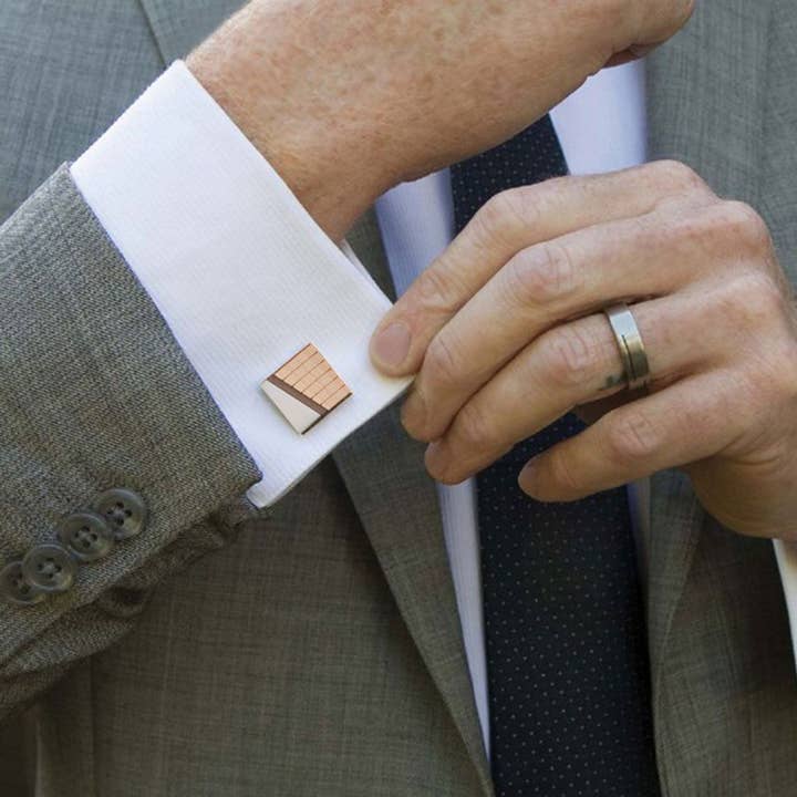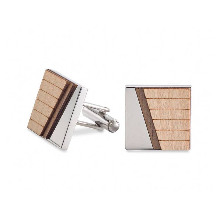 Cufflinks are a classic accessory for any stylish guy or groomsmen party. We added a new twist on a simple design—maple and walnut wood on stainless steel exude a style that's both rugged and refined. Dimension: 0.75" (2 cm) square.
