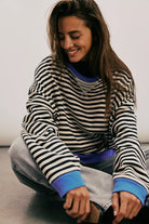 So cool and classic, this timeless crewneck is featured in an oversized, slouchy silhouette and staple striped print with contrasting hems for added dimension.